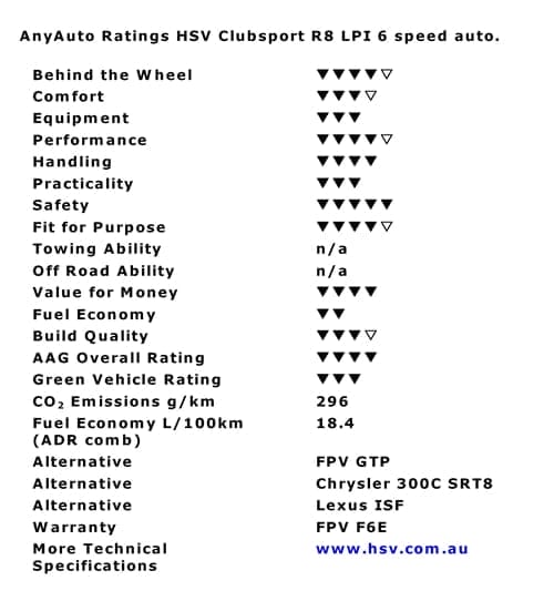 The HSV Clubsport R8 has a MLP of $75,600 as tested with the optional auto and LPI system.